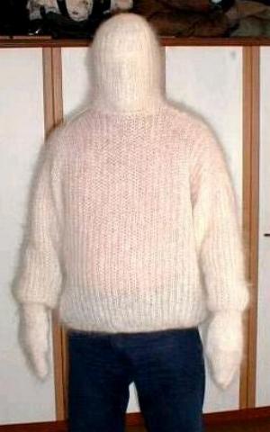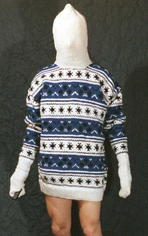 Pullover mit angestrickten Fäustlingen und Balaclava ohne Öffnungen